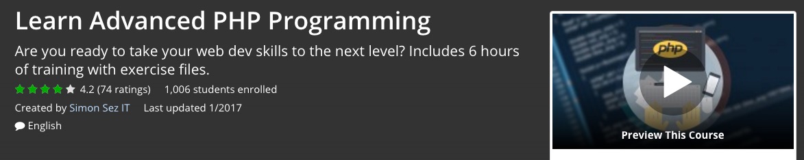 Learn Advanced PHP Programming is a great course if you want to get into the PHP programming that many website owners are using to take their website to the next level. PHP stands for “Hypertext Preprocessor” and addresses coding from a “backend” model that allows you to interject various components into HTML before you create your finished website.