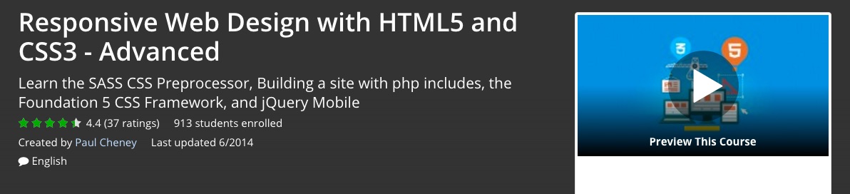 Responsive Web Design with HTML5 and CSS3 – Advanced is a less expensive course that focuses on responsive design and uses HTML5 (the language of app development) and CSS3 (the latest edition of cascading style sheets). This would be a great course for you to look into if you don’t have 12 hours to spend on updating your skills, but it will show you some of the essentials that you can then use to apply to your web design plans.