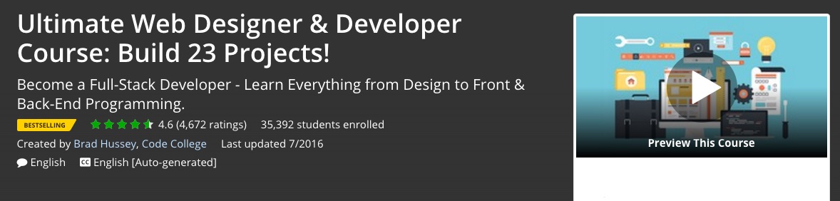 The Ultimate Web Designer and Developer Course is a course by Brad Massey, a coder, who has vast experience in creating and maintaining websites. This course will teach you web design skills from both a coding and a software design perspective and features the following aspects: