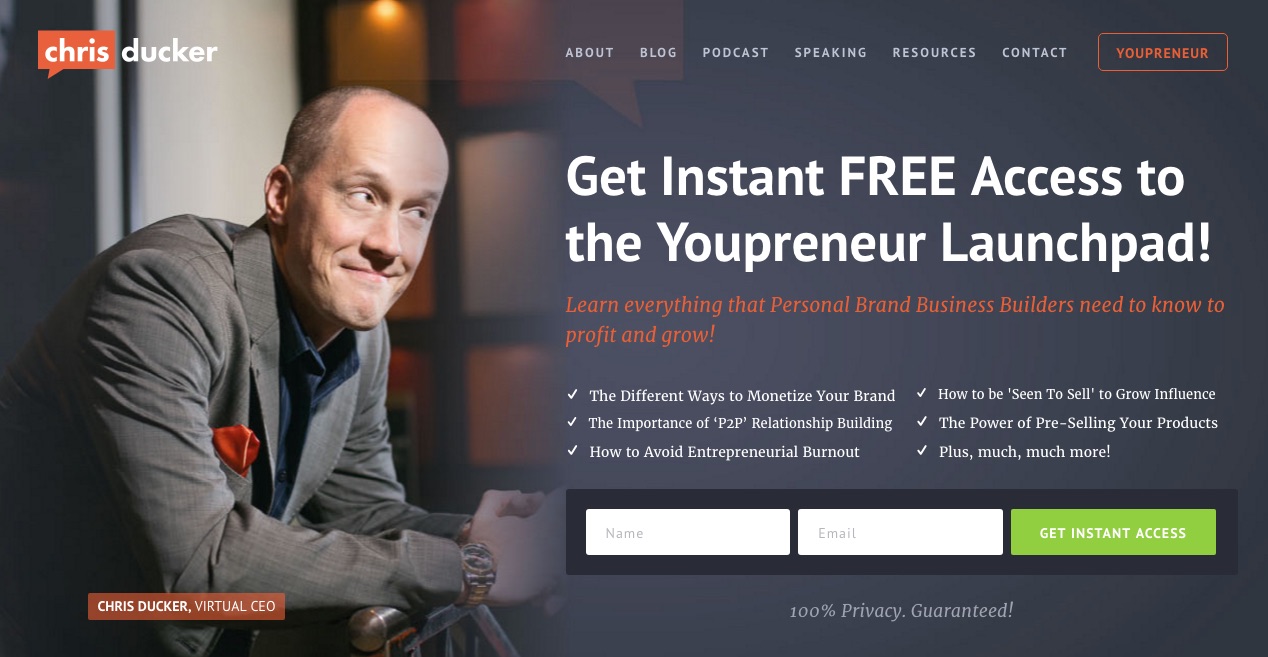 Chris Ducker calls himself the “virtual CEO” on his site which is comical in a way as it suggests that he’s not a “real CEO.” But everyone who comes to his site knows what it means, that he’s the guru of virtual entrepreneurship and helps other business owners working online to achieve their goals. His best-known book is called, “Virtual Freedom” and it is advertised on his blog. The book has sold over 30,000 copies and is an Amazon bestseller.