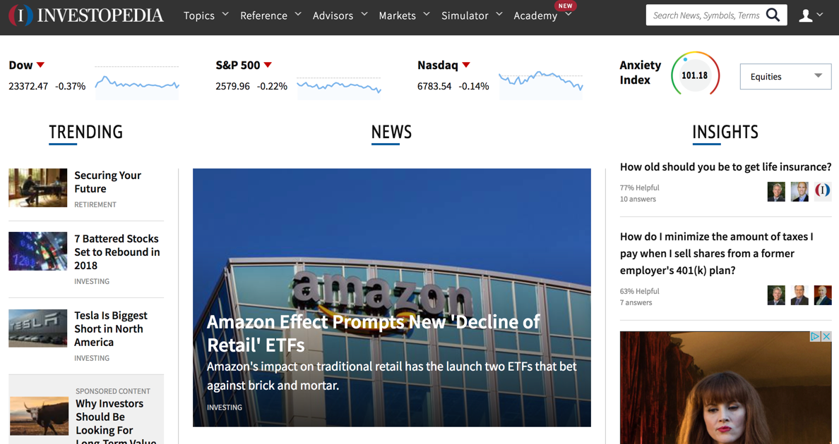 Investopedia has created a name for themselves by being one of the most credible sources for business and investment news. They focus on financial news, as well and even offer some high content articles on insurance and business that helps people make more informed decisions. Their website seems to fit their brand nicely and has the format of a newspaper publication, which is appropriate for this type of business.